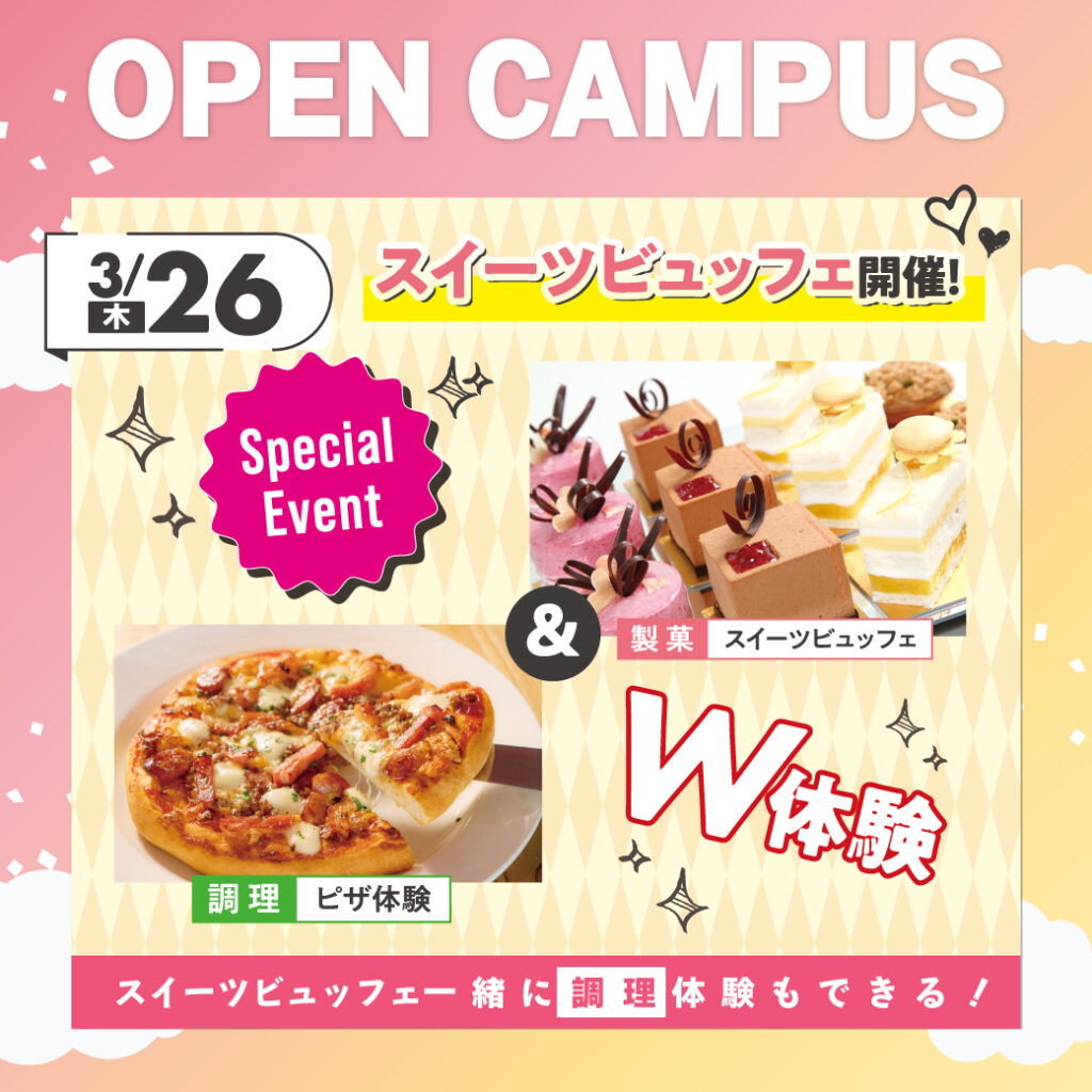 3/26(木) スイーツビュッフェ開催✨同時開催!調理体験:ピザ体験🍕