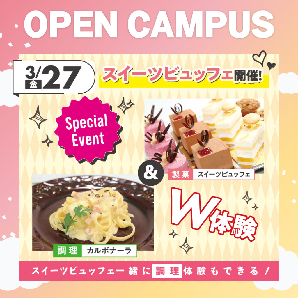 3/27(金) スイーツビュッフェ開催✨同時開催!調理体験:カルボナーラ🍳