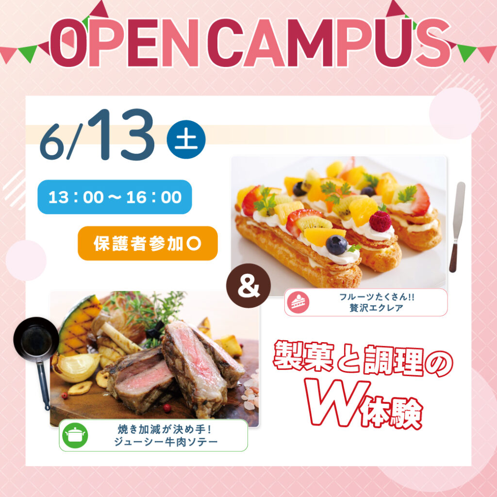 6/13土曜日のオープンキャンパスは製菓と調理が体験できるW体験day✌