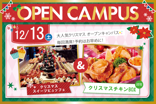 12/13(土) クリスマススイーツビュッフェ開催💖調理体験:クリスマスチ…