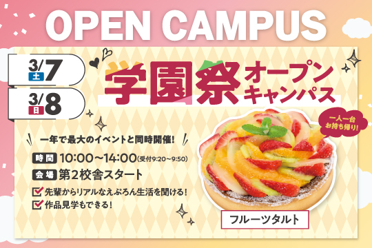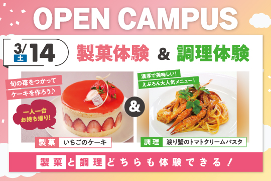 3/7㈯3/8㈰ えぷろん学園祭同時開催オープンキャンパス!!製菓体験:フ…