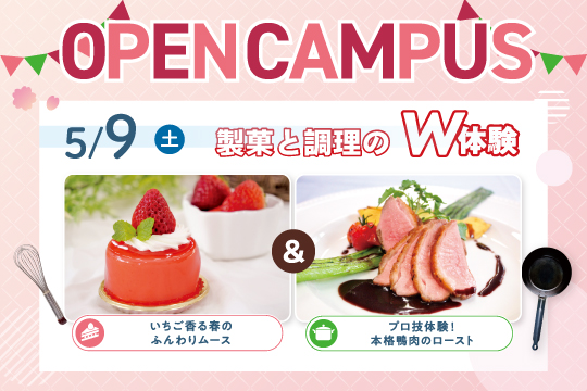 5/9(土) 製菓体験:いちごのムースケーキ🍓 調理体験:鴨肉のロースト🍽…