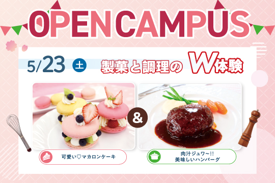5/23(土) 製菓体験:可愛い♡マカロンケーキ💕 調理体験:肉汁じゅわ~…