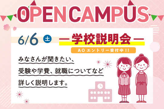 6/6(土) 学校説明会&ミニ実習体験✨ AOエントリー受付中‼